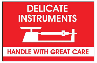 Delicate Instruments/Handle with Great Care Shipping Labels. Distinguish your fragile packages with these labels to lend a professional appearance to your important shipments. Size:2 x 3". Color: RED/WHITE. Priced per roll of 500